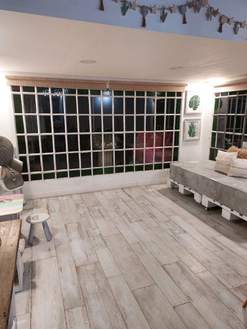 Comedor diario o galeria con ventanas al parque.